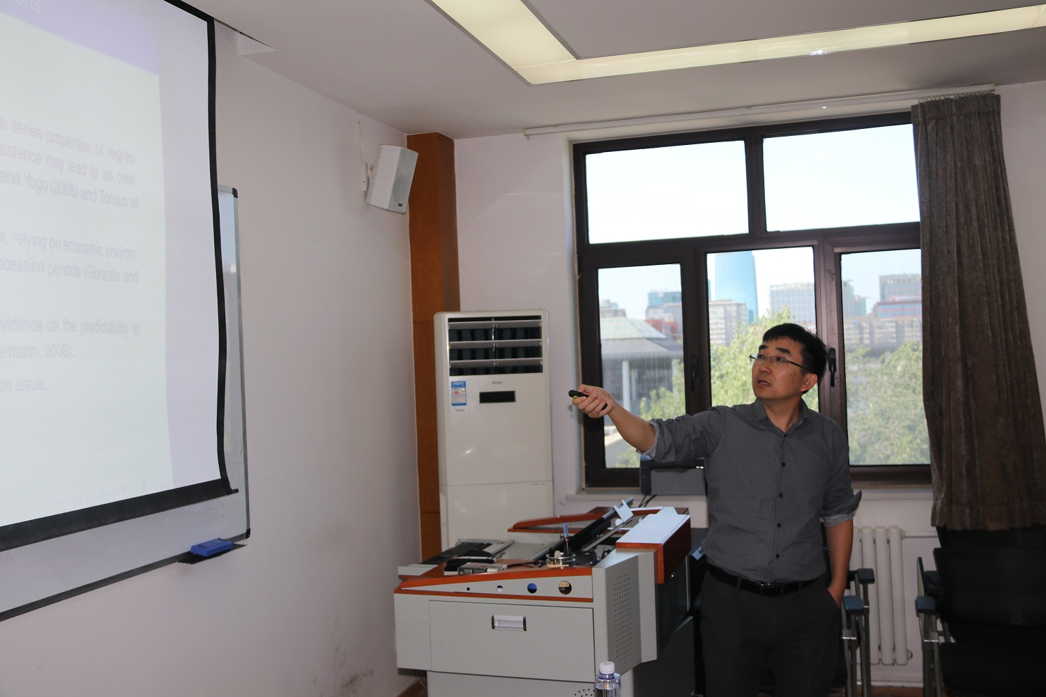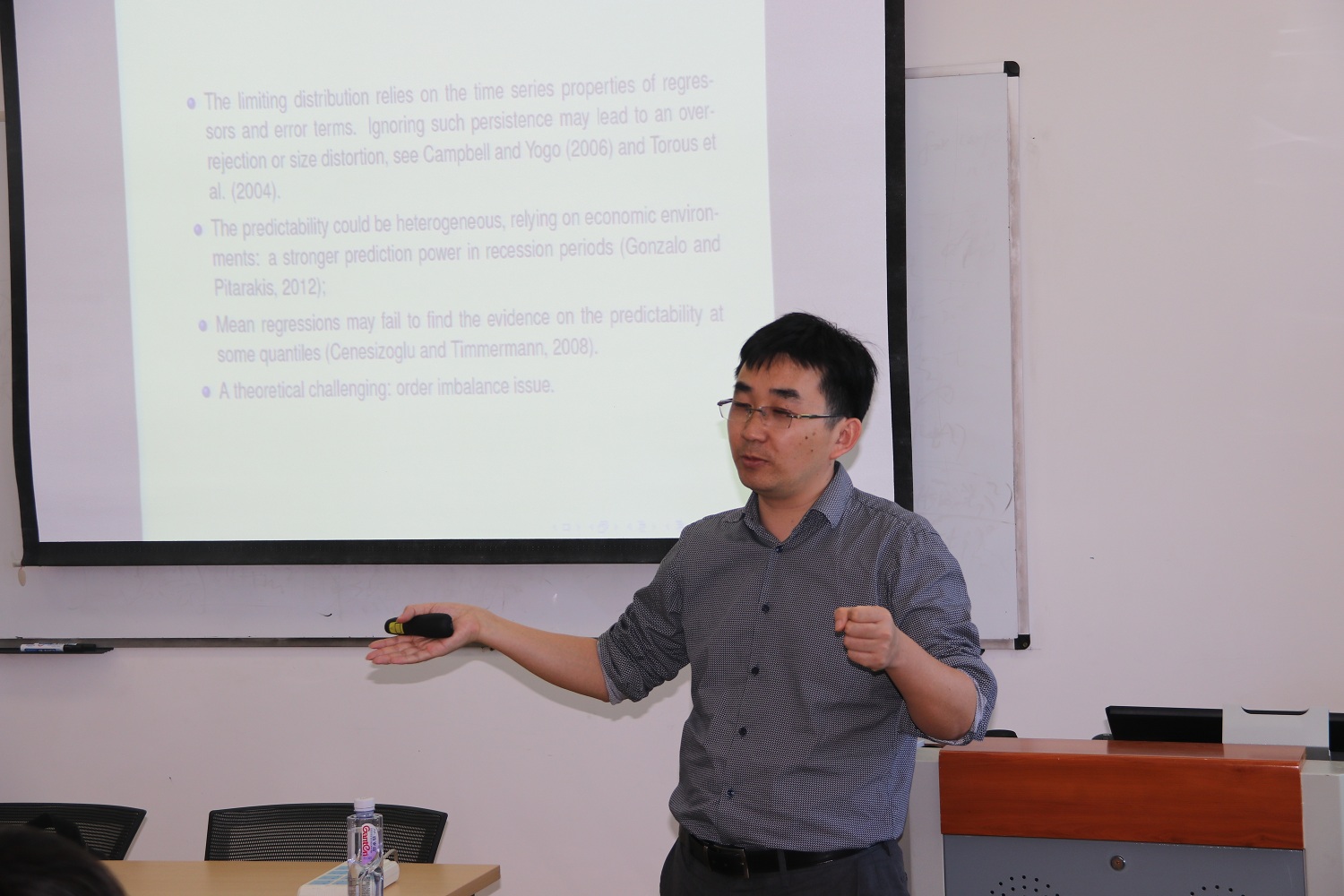 2019年5月27日下午,来自厦门大学王亚南经济研究院的陈海强教授在我校崇德西楼(原科研楼)702会议室为我校师生进行了以“A New Approach to Test Predictability in Quantile Regressions with Persistent Predictors”为主题的报告会。