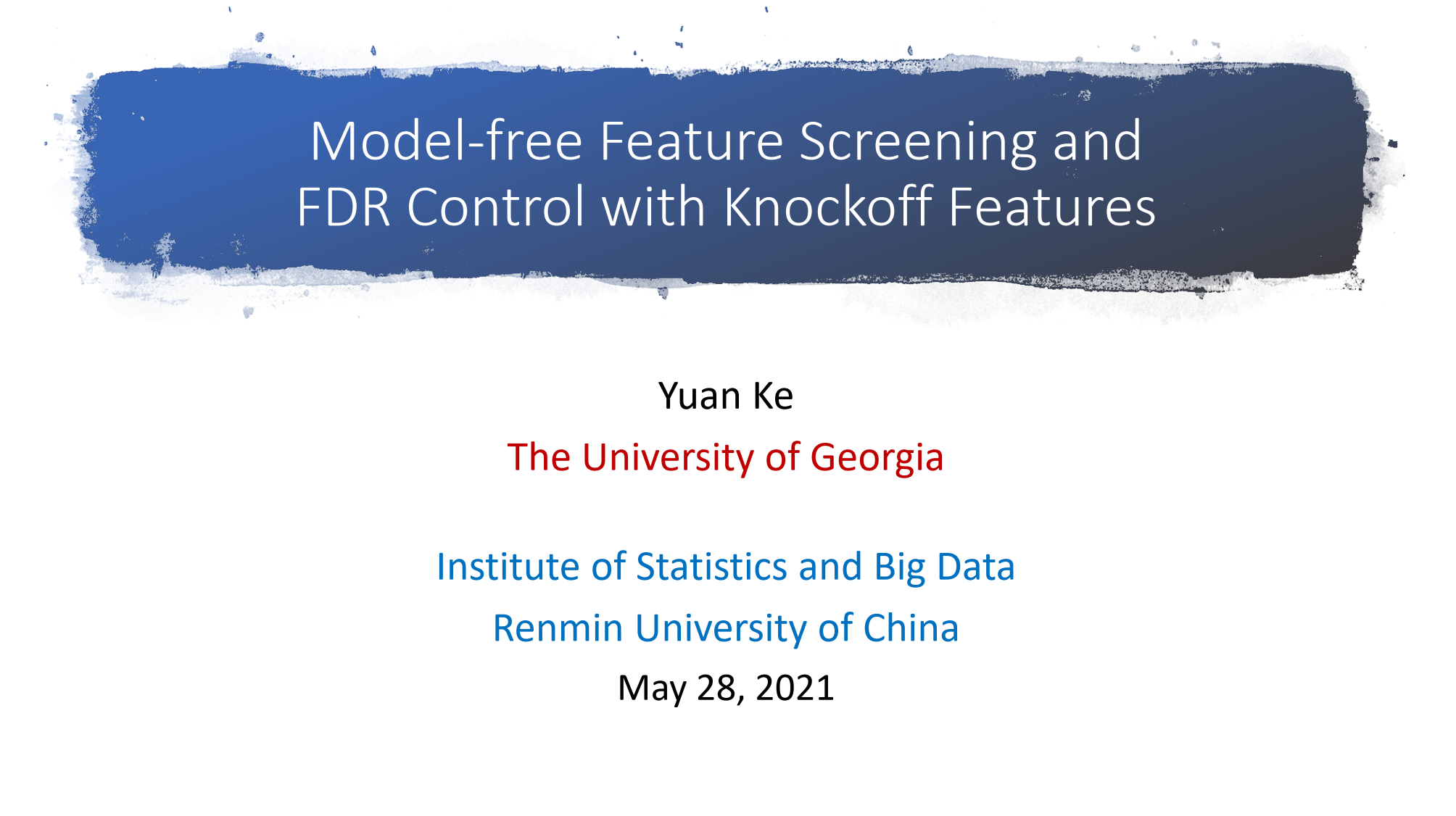 2021年5月28日上午,佐治亚大学柯源助理教授应我院邀请在线进行了以“Model-free Feature Screening and FDR Control with Knockoff Features”为主题的报告会。