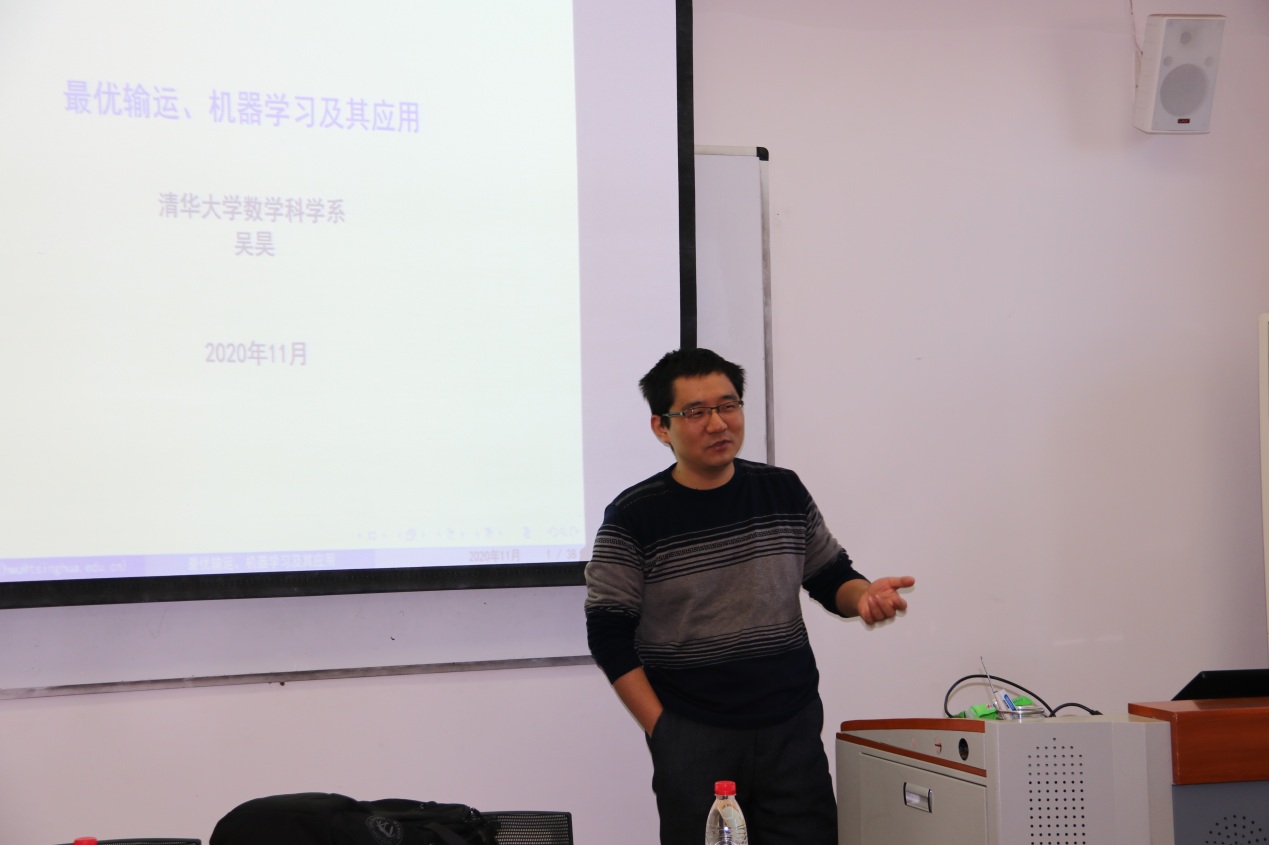 2020年11月27日上午,清华大学数学科学系吴昊副教授在崇德西楼702会议室进行了以“最优输运、机器学习及其应用”为主题的报告会。
