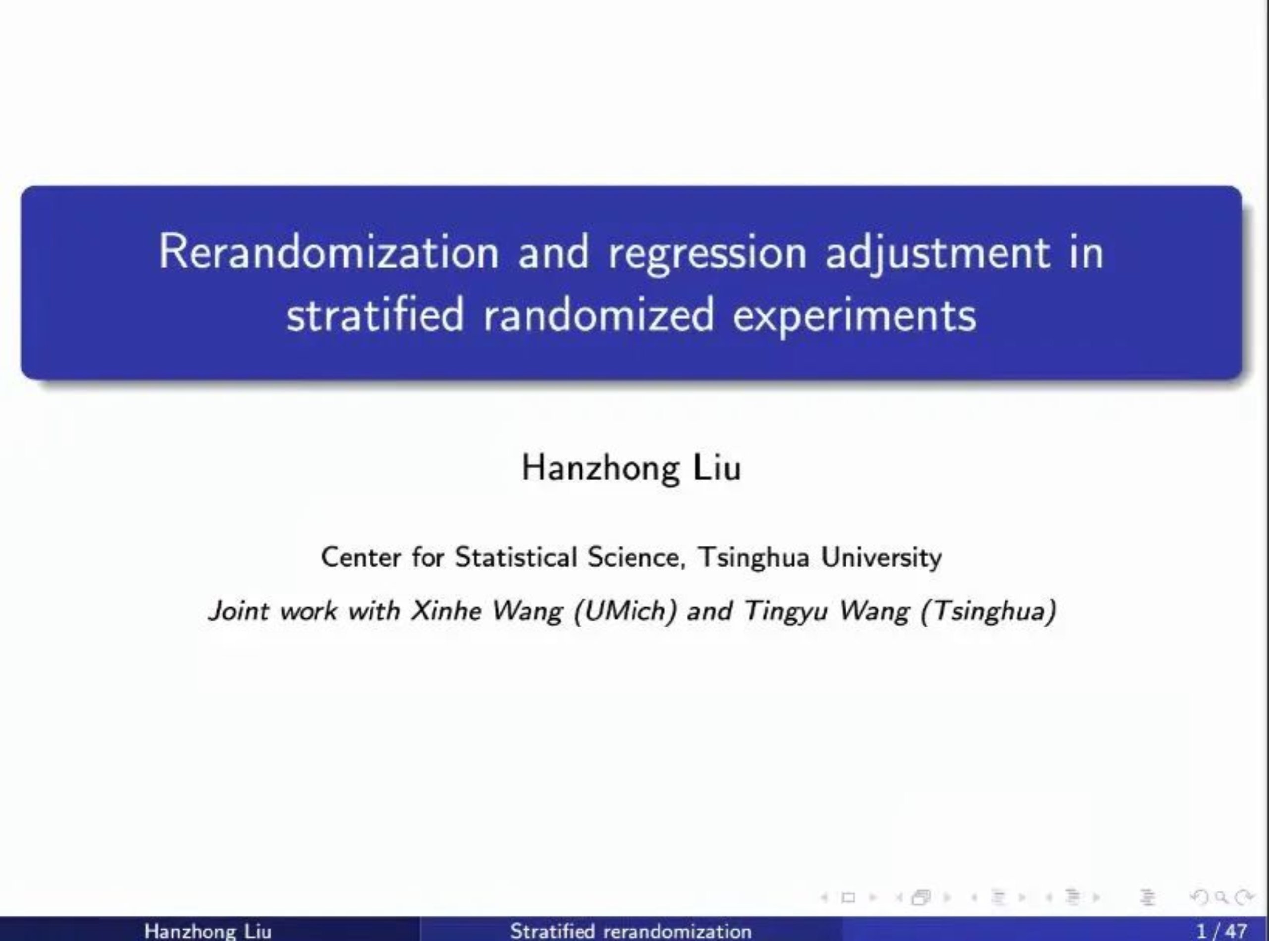 2021年11月19日上午,清华大学刘汉中副教授应我院邀请线上进行了以“Rerandomization and regression adjustment in stratified randomized experiments”为主题的在线报告会。