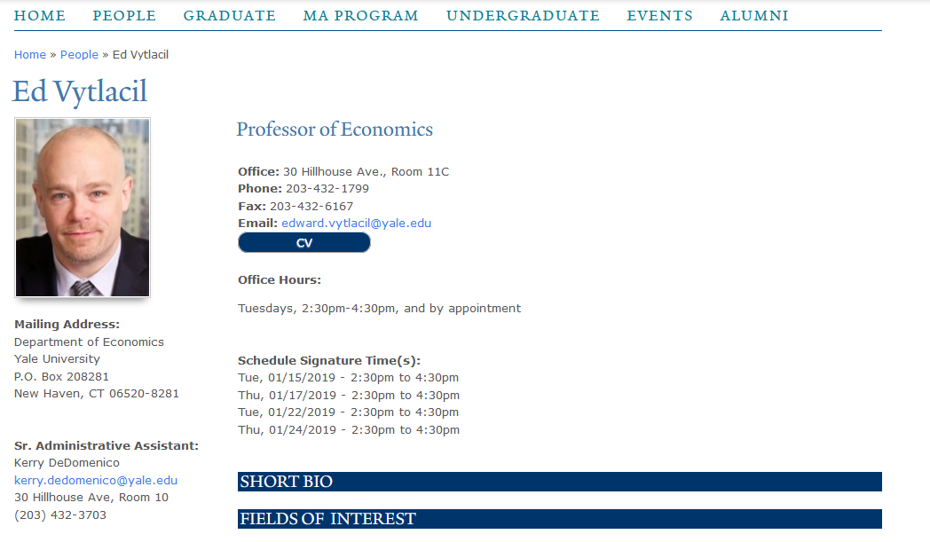Edward Vytlacil is an econometrician, whose work has focused on the micro-econometric methodology for treatment effect and policy evaluation using disaggregate data. A theme in his work has been in allowing for the effects of a treatment to vary across people, and allowing individuals to have some knowledge of their own idiosyncratic treatment effect and to act upon that knowledge.