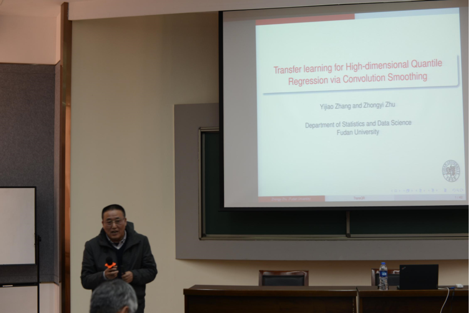 复旦大学教授朱仲义以“Transfer Learning for High-Dimensional Quantile Regression via Convolution Smoothing”为题作报告。