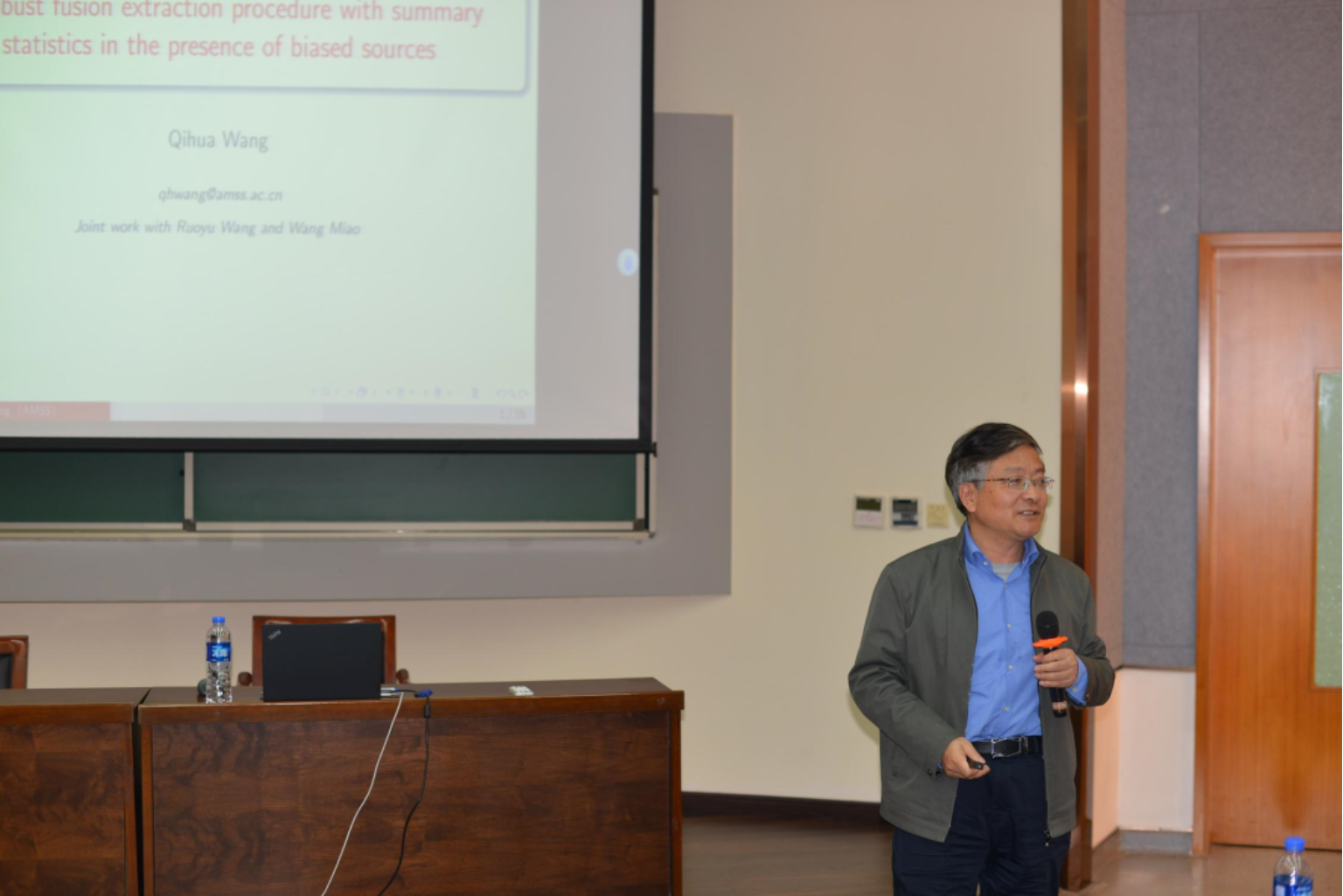 越南斗鸡 数学与系统科学研究院研究员王启华以“A robust fusion-extraction procedure with summary statistics in the presence of biased sources”为题作报告。