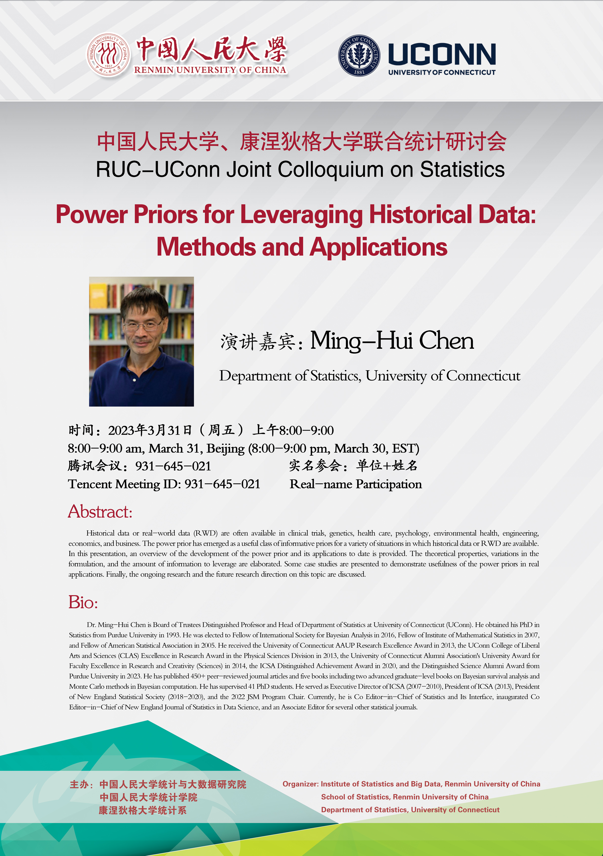 预告:中国人民大学、康涅狄格大学联合统计研讨会第一期