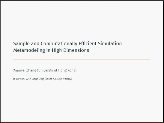 2021年4月30日上午,香港大学张晓炜助理教授应我院邀请在线进行了以“Sample and Computationally Efficient Simulation Metamodeling in High Dimensions”为主题的讲座。