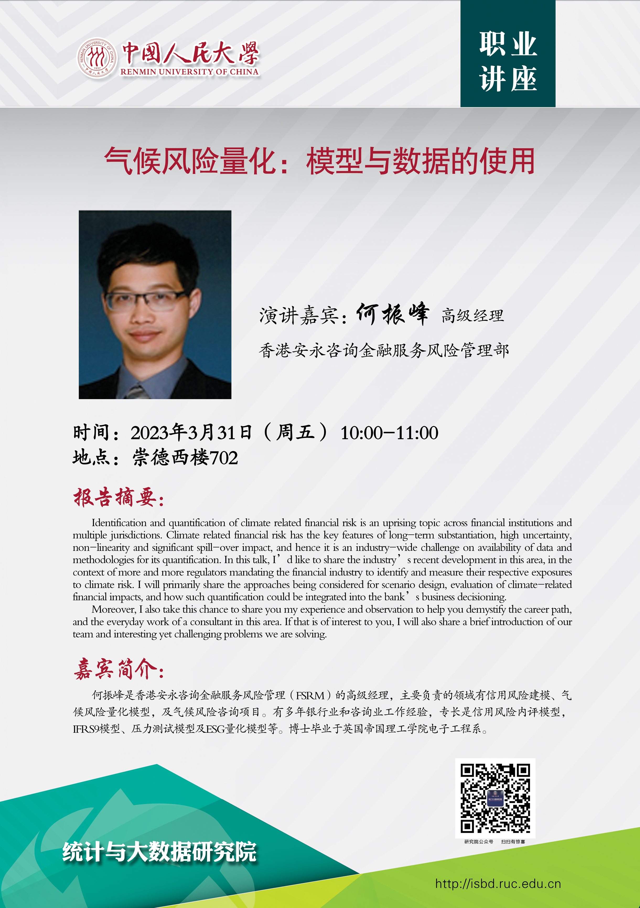 预告:我院将邀请香港安永咨询金融服务风险管理部高级经理何振峰到院讲座