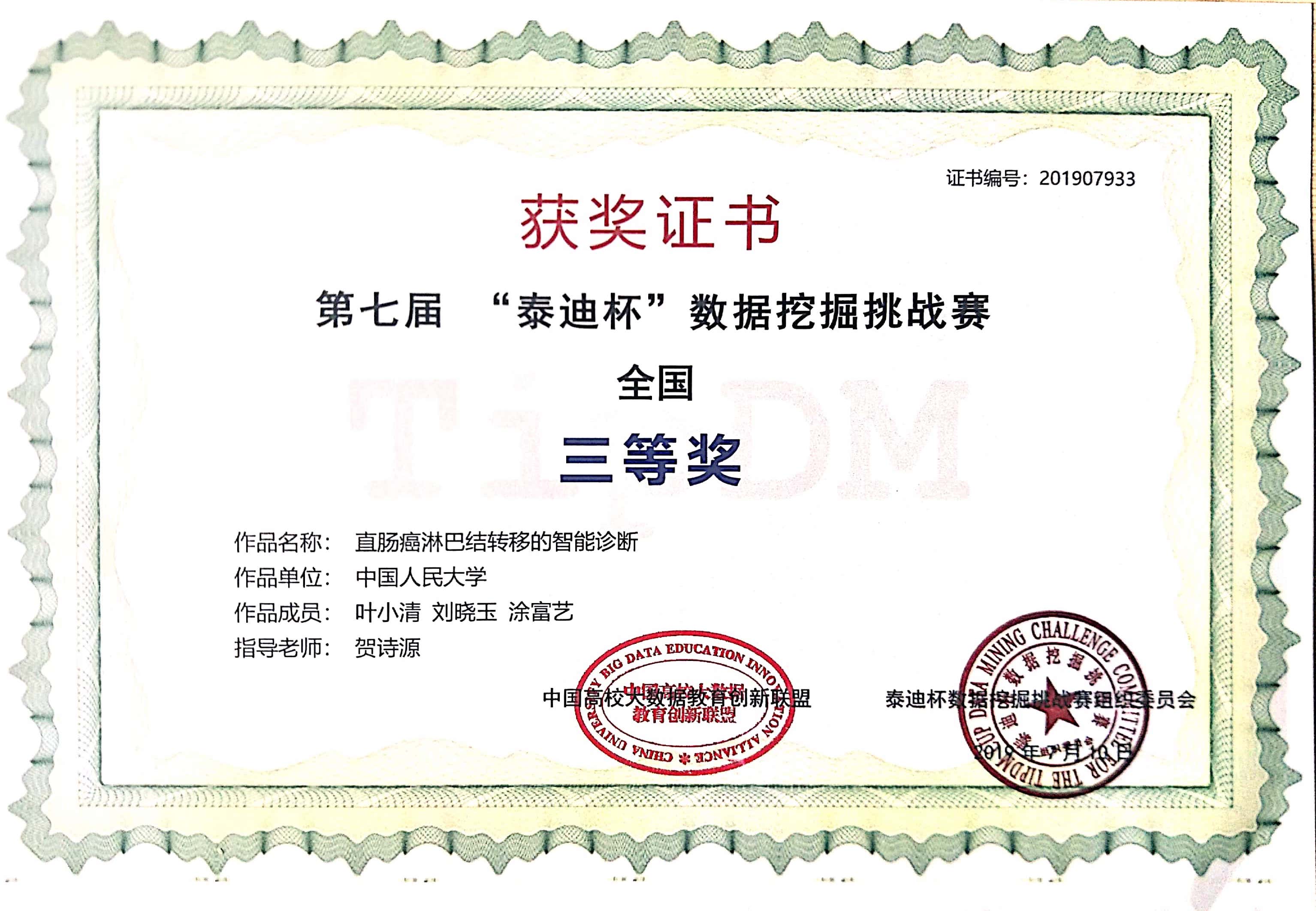热烈祝贺我院博士生刘晓玉、涂富艺、叶小清同学在数睿思(BdRace)全国大学生数据挖掘竞赛中荣获佳绩