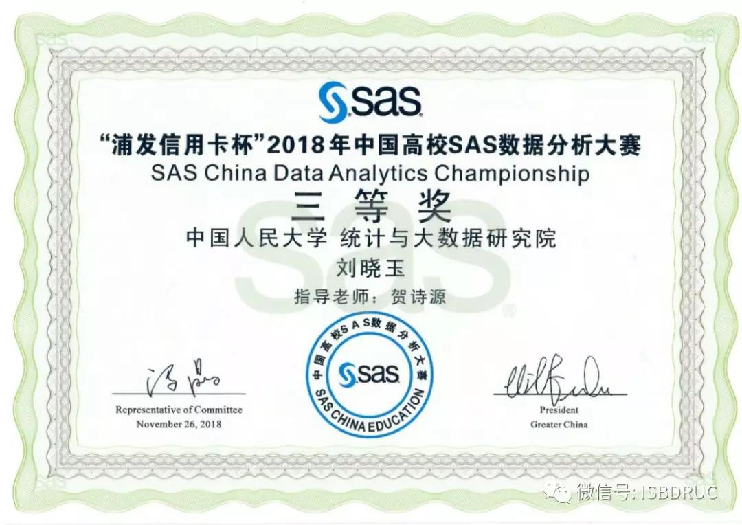 在本次大赛中,我院2018级博士研究生刘晓玉同学在我院贺诗源老师的指导下代表中国人民大学参赛,凭借扎实的统计学功底,一路过关斩将,最终获得了全国三等奖的好成绩。