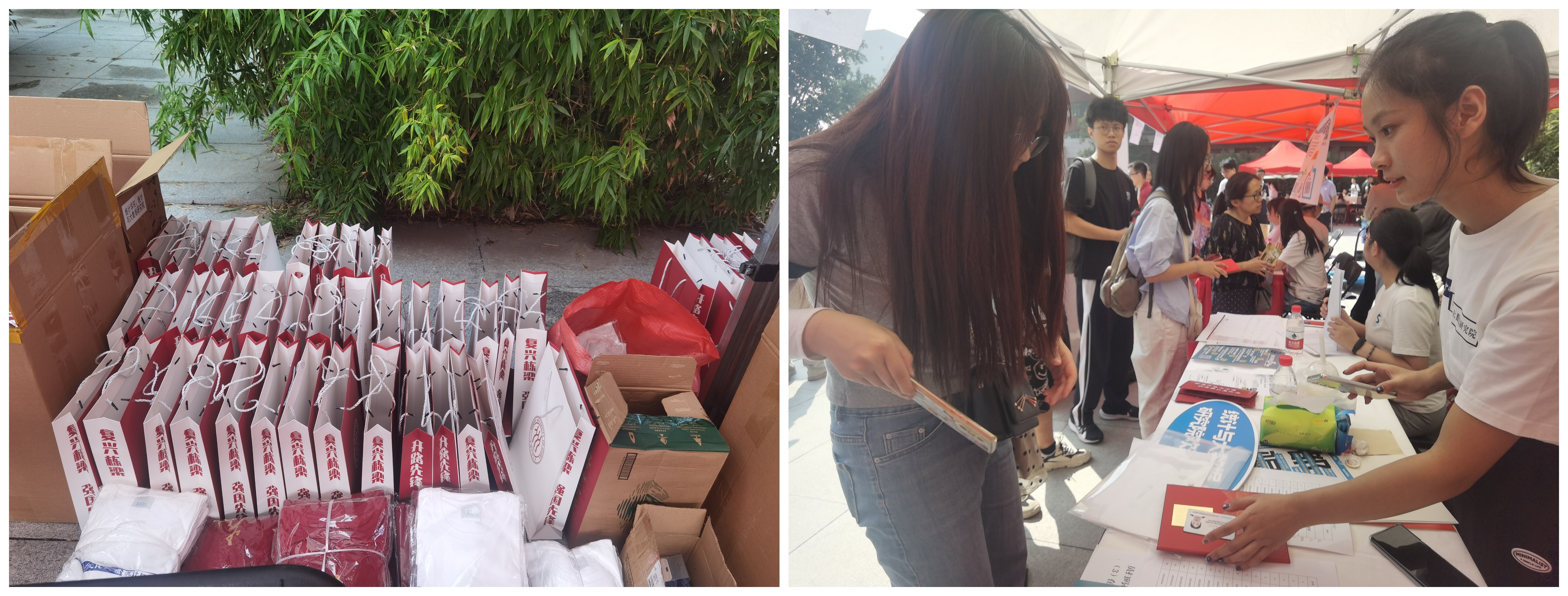 清晨,志愿者们提前备好物资,一切准备就绪,只待新同学的到来。新同学来到展台,志愿者为他们核验身份信息、分发物资、答疑解惑、拍照留念,报到工作井然有序进行。